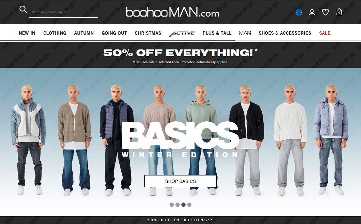 OutletGO — простой сервис для покупки и доставки товаров с официального сайта BoohooMAN из США в Россию. В магазине boohooMAN каждый мужчина сможет обновить свой гардероб, открыв для себя последние тренды мужской моды. Будь то повседневная одежда или что-то для особого случая, выбор на этом сайте впечатляет. Покупайте всё, что хочется прямо из дома, экономьте до 60% на распродажах и акциях.
