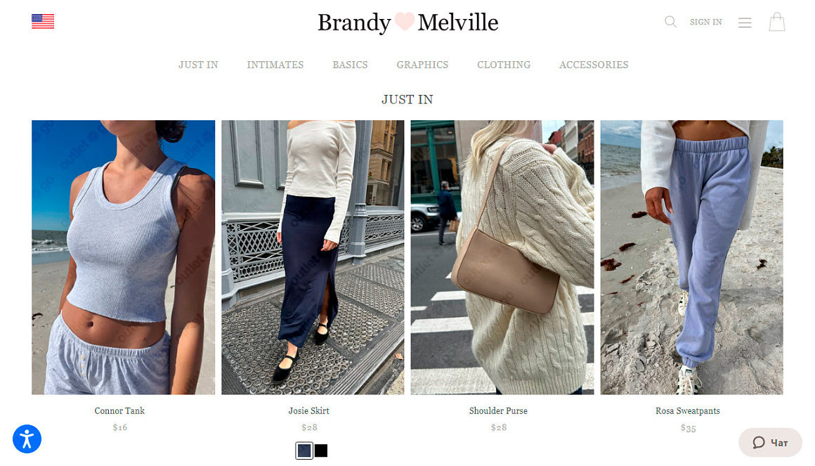 OutletGO — простой сервис для покупки и доставки товаров с официального сайта Brandy Melville из США в Россию. Brandy Melville предлагает одежду в стиле калифорнийского кэжуал. С легкостью и свободой, каждый элемент коллекции дополнит ваш повседневный наряд. Покупайте всё, что хочется прямо из дома, экономьте до 60% на распродажах и акциях.