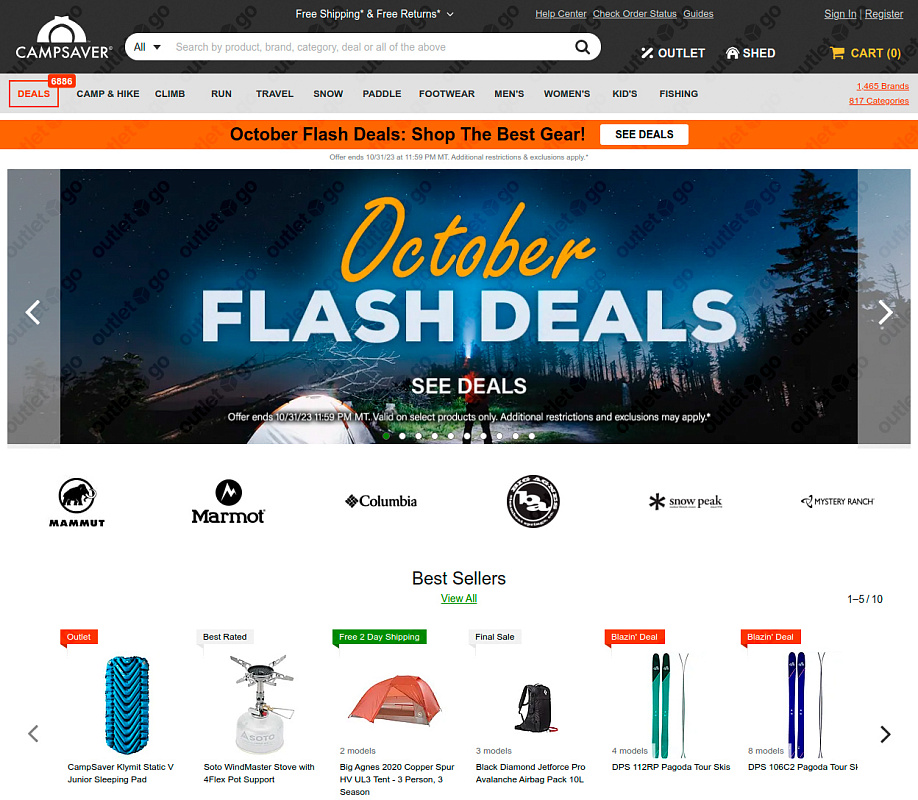 OutletGO — простой сервис для покупки и доставки товаров с официального сайта CampSaver.com из США в Россию. Для тех, кто любит приключения на природе, CampSaver предлагает все необходимое. От палаток до горнолыжного оборудования, каждый товар гарантирует надежность в любых условиях. Покупайте всё, что хочется прямо из дома, экономьте до 60% на распродажах и акциях.
