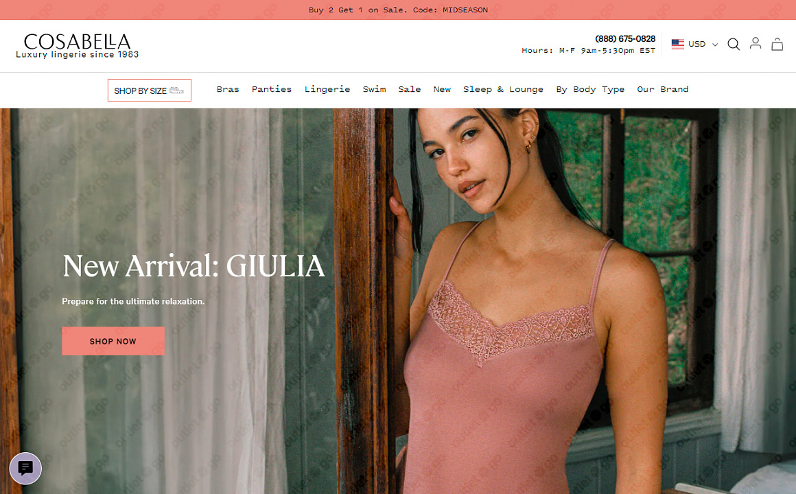 OutletGO — простой сервис для покупки и доставки товаров с официального сайта Cosabella из США в Россию. Cosabella — это мир изысканного женского белья и ночной одежды. Каждый продукт отражает страсть к качеству и дизайну, предлагая широкий ассортимент для любой женщины. Покупайте всё, что хочется прямо из дома, экономьте до 60% на распродажах и акциях.