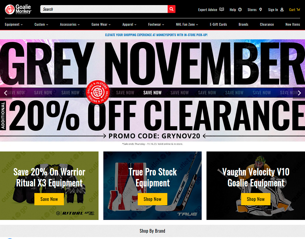 OutletGO — простой сервис для покупки и доставки товаров с официального сайта Goalie Monkey из США в Россию. В магазине Goaliemonkey ценители хоккея найдут все необходимое для вратаря, начиная от вратарских клюшек и заканчивая защитной экипировкой. С разнообразными товарами от ведущих брендов каждый спортсмен может подобрать экипировку, соответствующую его требованиям и финансовым возможностям. Покупайте всё, что хочется прямо из дома, экономьте до 60% на распродажах и акциях.