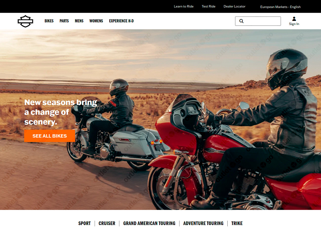 OutletGO — простой сервис для покупки и доставки товаров с официального сайта Harley-Davidson из США в Россию. В Harley-Davidson представлены легендарные мотоциклы и аксессуары для истинных ценителей дороги. Каждый байкер найдет здесь то, что дополнит его приключения на открытой дороге. Покупайте всё, что хочется прямо из дома, экономьте до 60% на распродажах и акциях.