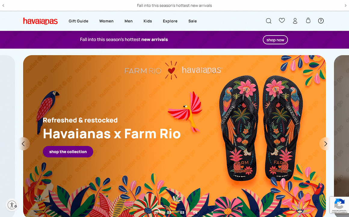 OutletGO — простой сервис для покупки и доставки товаров с официального сайта Havaianas из США в Россию. Этот магазин славится своими непревзойденными сланцами, которые символизируют лёгкость и радость лета. От классических моделей до ярких дизайнов, Havaianas радует своим разнообразием. Покупайте всё, что хочется прямо из дома, экономьте до 60% на распродажах и акциях.