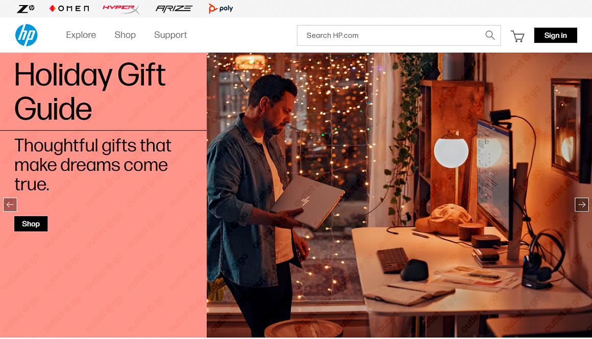 OutletGO — простой сервис для покупки и доставки товаров с официального сайта Hewlett-Packard из США в Россию. В магазине HP представлены продукты высокого качества - от персональных компьютеров и ноутбуков до принтеров и аксессуаров. С выдающейся технологией и разнообразием моделей, каждый пользователь найдет оптимальное решение для работы или развлечений. Покупайте всё, что хочется прямо из дома, экономьте до 60% на распродажах и акциях.