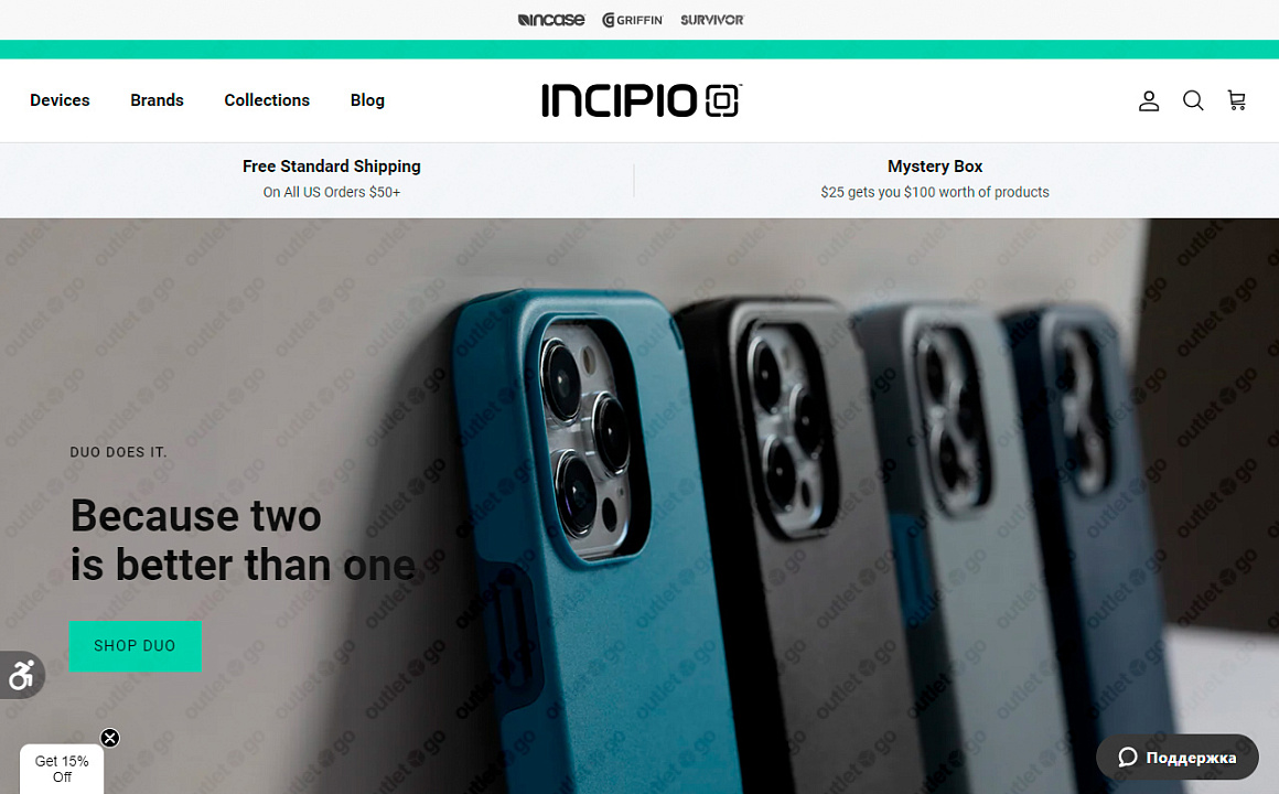 OutletGO — простой сервис для покупки и доставки товаров с официального сайта Incipio из США в Россию. Incipio предлагает стильные и функциональные аксессуары для ваших гаджетов. От чехлов для смартфонов до защитных пленок, каждый гаджет получит надежную защиту и индивидуальный вид. Перейдите на новый уровень защиты с Incipio. Покупайте всё, что хочется прямо из дома, экономьте до 60% на распродажах и акциях.