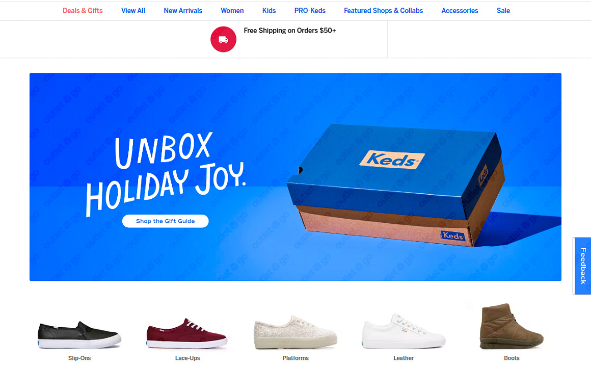 OutletGO — простой сервис для покупки и доставки товаров с официального сайта Keds из США в Россию. В Keds поклонники обуви откроют для себя исключительные коллекции женских кед. Современные дизайны и комфорт делают каждую пару особенной. Это место, где стиль сочетается с удобством. Покупайте всё, что хочется прямо из дома, экономьте до 60% на распродажах и акциях.