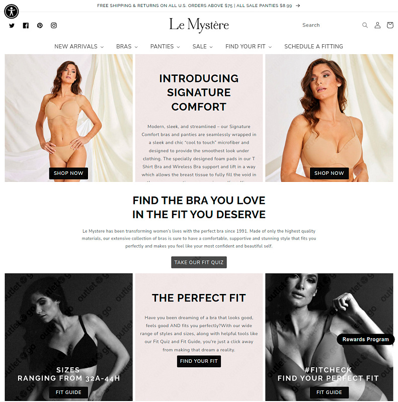OutletGO — простой сервис для покупки и доставки товаров с официального сайта Le Mystere из США в Россию. В ассортименте Le Mystere вы обнаружите роскошное белье, сочетающее в себе исключительный комфорт и элегантность. Линейка продукции включает в себя бюстгальтеры, трусики и аксессуары, созданные с учетом анатомии женского тела. Покупайте всё, что хочется прямо из дома, экономьте до 60% на распродажах и акциях.