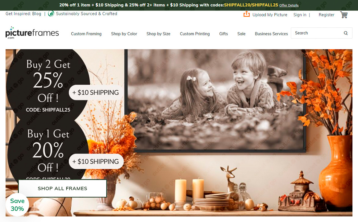 OutletGO — простой сервис для покупки и доставки товаров с официального сайта Picture Frames из США в Россию. На PictureFrames.com можно выбрать рамки для любого изображения. От классических деревянных рам до современных металлических, сайт поможет подчеркнуть и сохранить ваши воспоминания. Покупайте всё, что хочется прямо из дома, экономьте до 60% на распродажах и акциях.