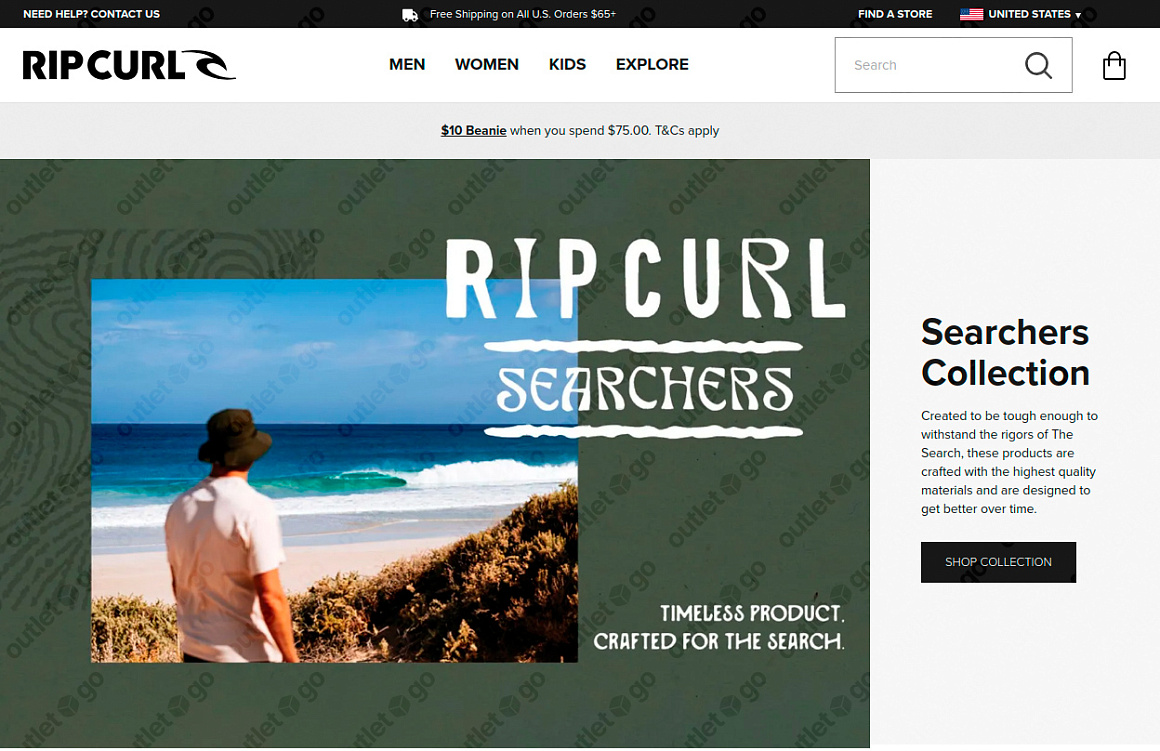 OutletGO — простой сервис для покупки и доставки товаров с официального сайта Rip Curl из США в Россию. RipCurl.com специализируется на товарах для серфинга. Если вы ищете доску, одежду для пляжа или аксессуары для серфинга, здесь представлены лучшие товары от ведущего бренда. Покупайте всё, что хочется прямо из дома, экономьте до 60% на распродажах и акциях.
