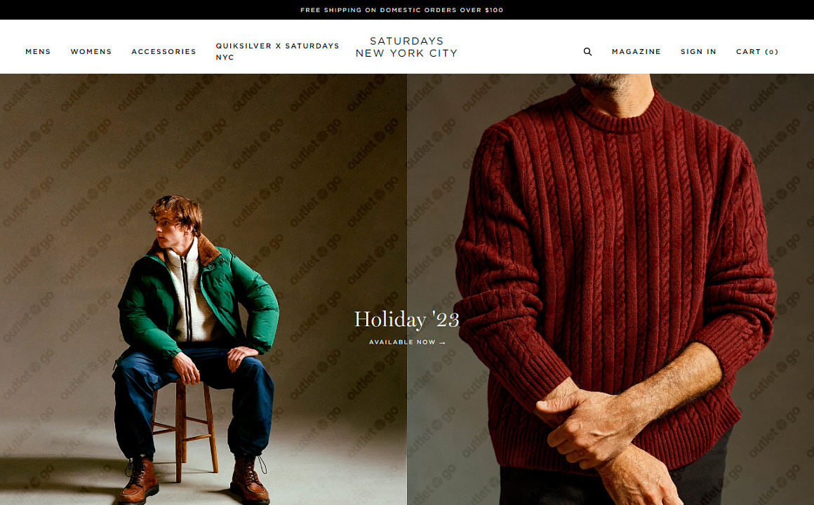 OutletGO — простой сервис для покупки и доставки товаров с официального сайта Saturdays NYC из США в Россию. В магазине Saturdays NYC вы найдете мужскую одежду, от повседневных футболок до стильных курток. С акцентом на качество и дизайн, каждый мужчина найдет ту одежду, которая подчеркнет его индивидуальность. Saturdays NYC - это место, где мода встречается с комфортом. Покупайте всё, что хочется прямо из дома, экономьте до 60% на распродажах и акциях.