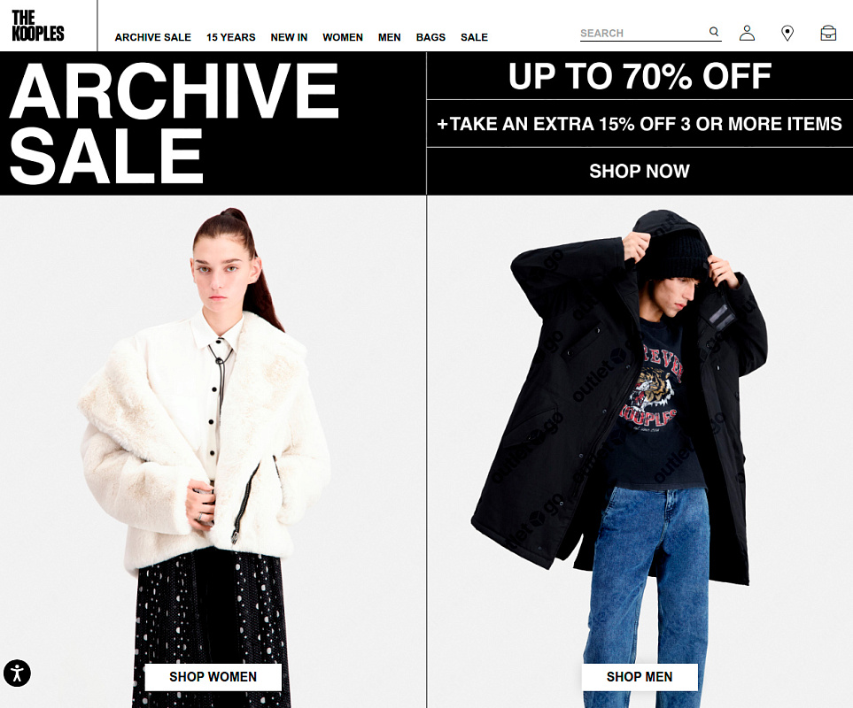 OutletGO — простой сервис для покупки и доставки товаров с официального сайта THE KOOPLES из США в Россию. В The Kooples можно найти одежду, которая выделяет индивидуальность. Утонченные детали, качественные материалы и современные силуэты создают неповторимый образ. Покупайте всё, что хочется прямо из дома, экономьте до 60% на распродажах и акциях.