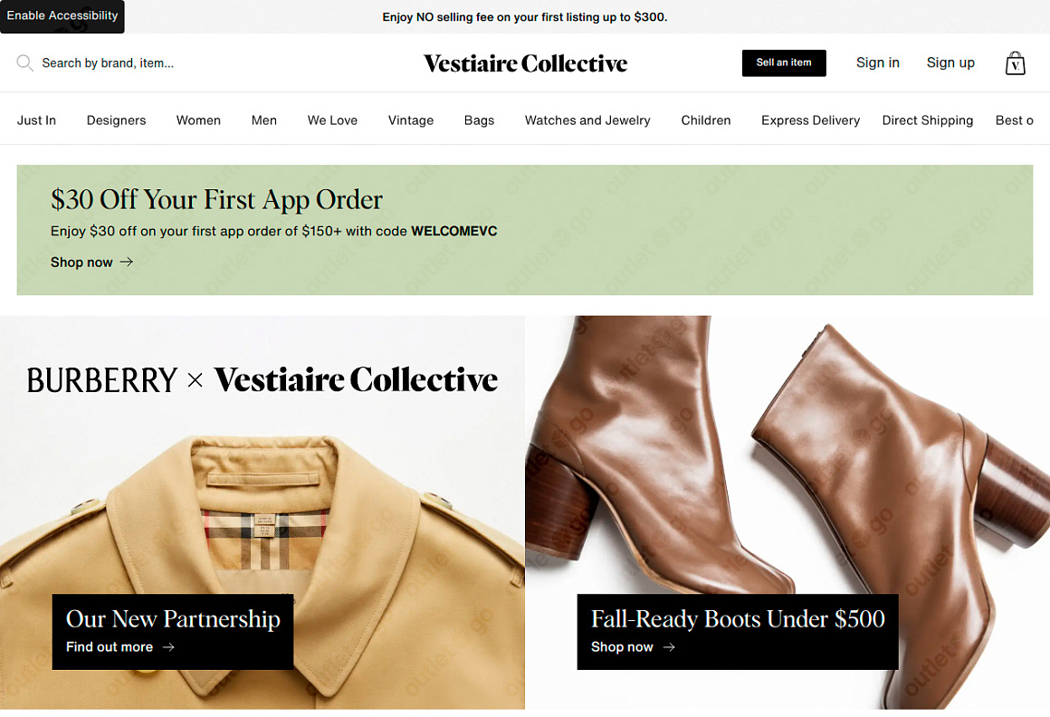 OutletGO — простой сервис для покупки и доставки товаров с официального сайта Vestiaire Collective из США в Россию. Vestiaire Collective предлагает изысканную модную одежду и аксессуары. От редких винтажных находок до современных моделей — выбор поражает разнообразием. Покупайте всё, что хочется прямо из дома, экономьте до 60% на распродажах и акциях.